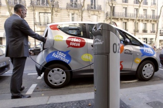 Autolib Electric Carshare and Charging Station. Photo: Yann Cramer